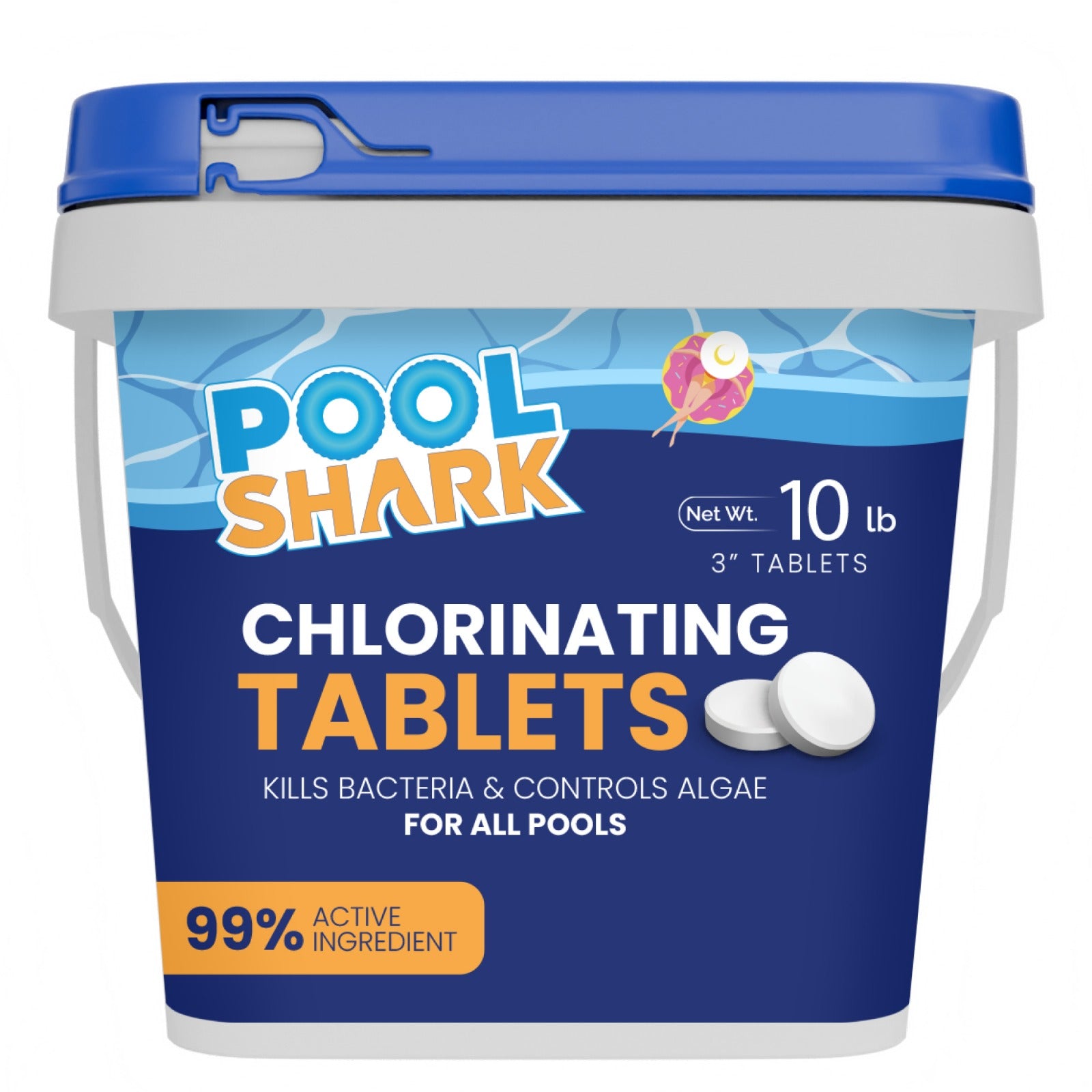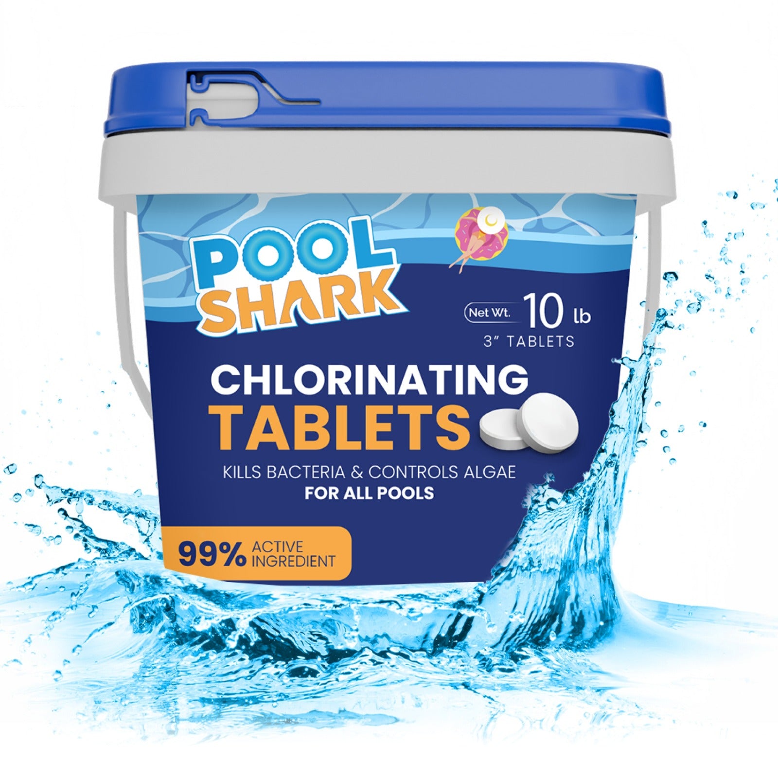 No more guessing how to keep your pool clean. Pool Sharkâ s slow-dissolving tablets consistent chlorine levels so your pool stays swim-ready with next to no effort. Effective for small backyard pools as well as large community pools.